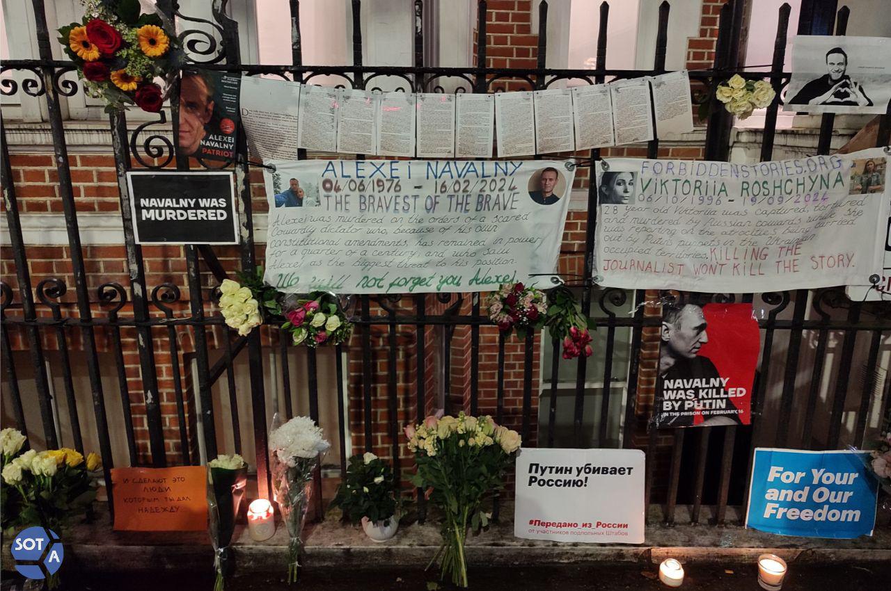 🔹 В Лондоне около 50 человек собрались напротив российского посольства. Выступления звучали на русском и английском языках. Участники говорили о недавних подтверждениях отравления Навального в колонии «Полярный волк», а также зачитали письмо Антонины Фаворской, сделавшей его последние прижизненные кадры. На акции прозвучали песни «Привет, это Навальный» и «Памяти Алексея Навального».