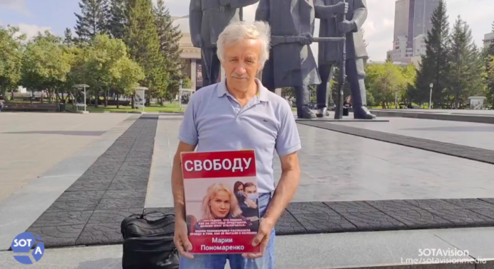 Активист Василий Семенюк решил привлечь внимание к ситуации, в которой находится Помаренко. Для этого он вышел на площадь Ленина в Новосибирске с плакатом с изображением журналистки и ее цитатами об издевательствах в колонии.
