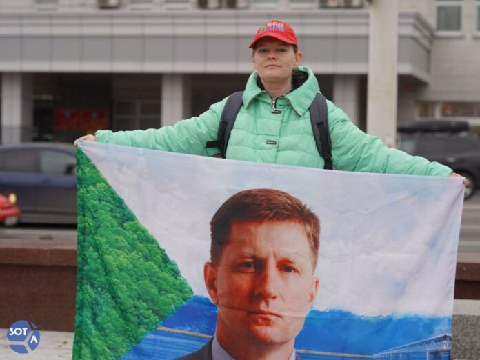 Активистка Яна Дробноход провела пикет на городской Площади победы. Своей акцией она решила напомнить об экс-губернаторе Хабаровского края Сергее Фургале, журналистке Марии Пономаренко и калининградском активисте Игоре Барышникове.