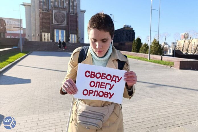 Одиночный пикет возле парка «ВДНХ» провела Оксана Осадчая. Своей акцией девушка попыталась привлечь внимание к делам журналистки Марии Пономаренко и сопредседателя «Мемориала» Олега Орлова — оба они получили реальные сроки за критику «спецоперации».