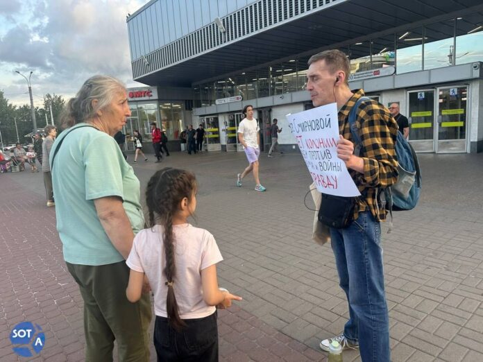Как сообщил корреспондент SOTAvisio с места событий, при задержании силовики объявили мужчине, что он обвиняется в «дискредитации армии РФ».