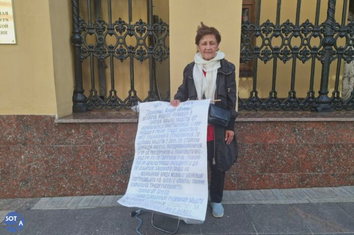 Юлия Шихова регулярно выходит в одиночные пикеты, чтобы привлечь внимание к проблемам своего сына Александра: он работал шахтером, но в 2010 году получил тяжелые травмы на производстве. Никакой социальной поддержки ему так и не предоставили.