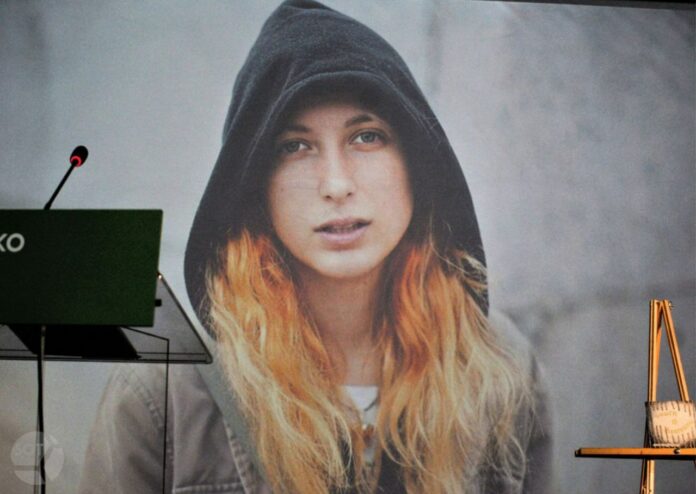 «Эта брошюра аккуратно обрезана и сшита белыми нитками. Надеюсь, аккуратнее, чем большинство политических дел», — цитирует ведущий рассказ художницы о лоте, который она создала, находясь в заключении.