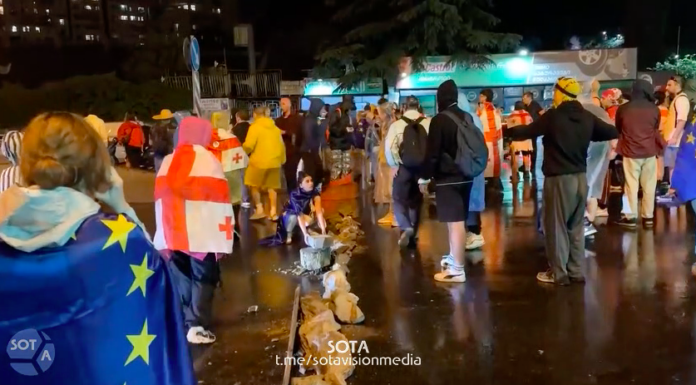 Митингующие требуют от властей страны не принимать «российский закон», освободить всех задержанных на акциях и наказать несоразмерно применивших силу полицейских.