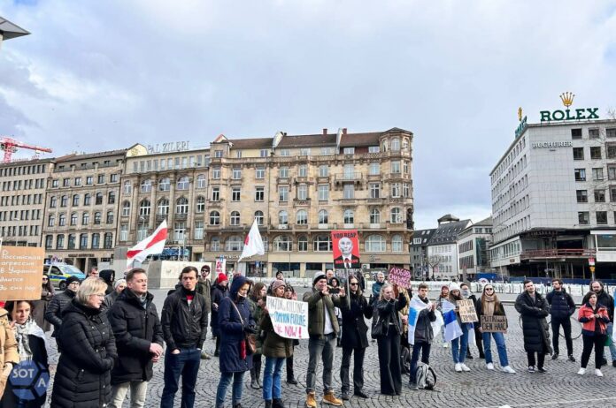 Более сотни россиян и граждан Беларуси собрались во Франкфурте в годовщину начала агрессии против Украины