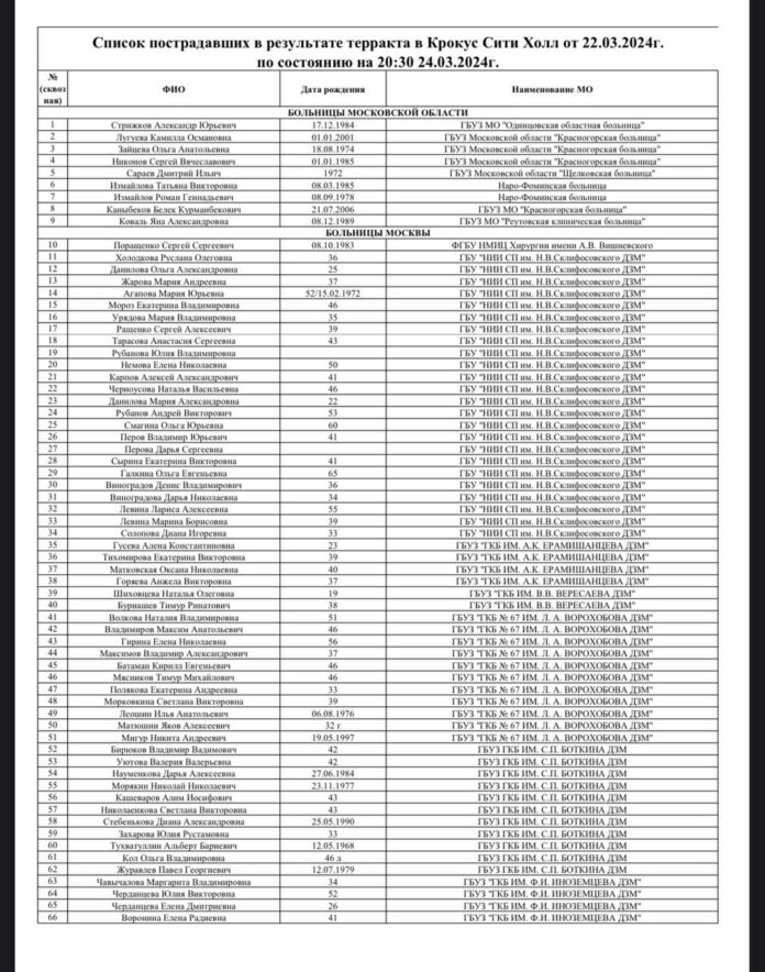 НовостиЧисло пострадавших в результате теракта в «Крокусе» выросло до 182 человек —... Новости Число пострадавших в результате теракта в «Крокусе» выросло до 182 человек — Минздрав Подмосковья Sota Vision 24.03.2024 22 Поделиться TwitterTelegramFacebookPinterestWhatsAppCopy URL Поделиться TwitterTelegramFacebookPinterestWhatsAppCopy URL Предыдущая статьяМузыканты группы «Пикник» возложили цветы к мемориалу памяти погибших во время теракта в «Крокусе»Следующая статьяЭммануэль Макрон срочно созвал совет обороны в Елисейском дворце, посвященный теракту в Москве и его последствиям ЧИТАТЬ ЕЩЕ Новости В Риге 10 тысяч человек вышли на улицу против отказа Латвии от конвенции о борьбе с домашним насилием 06.11.2025 Новости Активистку Зульфию Ситдикову повторно приговорили к 10 суткам ареста за возложение цветов к мемориалу жертвам политических репрессий 06.11.2025 Новости На журналиста «Проекта» Михаила Маглова составили протокол о нарушении порядка деятельности «иноагента» 06.11.2025 Популярное «Американские выборы лучше предсказывать, гадая на кофейной гуще и с картами Таро»: эксперты о победе демократов на местных выборах в США и перспективах кампании... 08.11.2025 От колонии до Вильнюса: истории освобожденных белорусских узников, вывезенных в Литву 07.11.2025 В Риге 10 тысяч человек вышли на улицу против отказа Латвии от конвенции о борьбе с домашним насилием 06.11.2025 Активистку Зульфию Ситдикову повторно приговорили к 10 суткам ареста за возложение цветов к мемориалу жертвам политических репрессий 06.11.2025 Загрузить больше