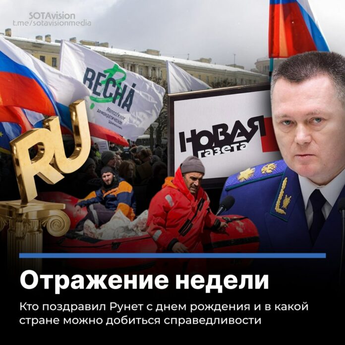КарточкиЧто запомнилось за прошедшую неделю? КарточкиНовости Что запомнилось за прошедшую неделю? Sota Vision Editor 10.04.2026 9 Поделиться TwitterTelegramFacebookPinterestWhatsAppCopy URL Это «Отражение недели». Вновь представляем вам пять ключевых событий уходящей недели, которые, на наш взгляд, стали самыми интересными и важными. В фокусе — событие, персона, цифра, слово и цитата недели. Поделиться TwitterTelegramFacebookPinterestWhatsAppCopy URL Предыдущая статьяВ СИЗО до 10 мая отправили обозревателя «Новой газеты» Олега Ролдугина Следующая статьяСтэнфордский университет признан «нежелательной организацией» в России ЧИТАТЬ ЕЩЕ Новости Александр Шестун объявил сухую голодовку из-за отказа в лечении и ограничений на свидания с детьми 10.04.2026 Новости В Баку предъявили обвинение российским IT-специалистам по делу о транзите наркотиков из Ирана 10.04.2026 Новости «Удивительно, что мне присвоили статус» — электоральный аналитик Роман Удот о своем «иноагенстве» 10.04.2026 Популярное Александр Шестун объявил сухую голодовку из-за отказа в лечении и ограничений на свидания с детьми 10.04.2026 В Москве проходит ярмарка «non/fictio№ весна 2026». Лекции об ИИ и споры о свободе слова 10.04.2026 В Баку предъявили обвинение российским IT-специалистам по делу о транзите наркотиков из Ирана 10.04.2026 «Удивительно, что мне присвоили статус» — электоральный аналитик Роман Удот о своем «иноагенстве» 10.04.2026 Загрузить больше