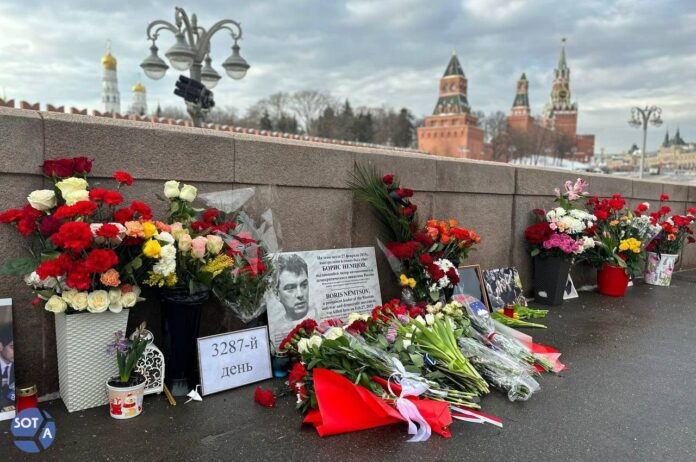 Цветы и фотографии несут к «Немцову мосту» на девятую годовщину смерти политика
