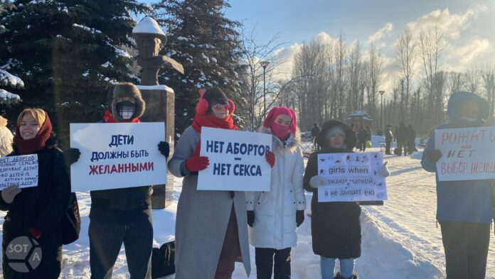 Несмотря на сильный мороз местные жительницы собрались в парке имени Тинчурина, чтобы выразить свое несогласие с ограничением репродуктивных прав женщин.