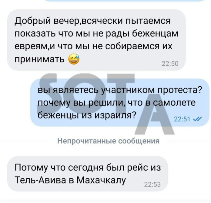 Вечером 29 октября группа радикально настроенных граждан Махачкалы захватили местный аэропорт. Протестующие требовали развернуть самолет с гражданами Израиля, призывали «прогнать евреев», и вступили в стычку с полицейскими. Согласно информации регионального Минздрава, в результате столкновений пострадало 20 человек.