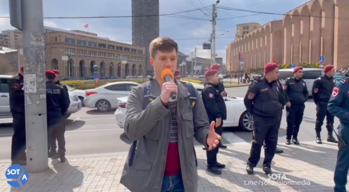 Акция проходила на площади Мясникяна (Площадь России), напротив очередей с теми, кто пришел проголосовать.