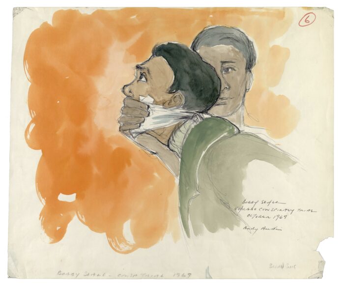 Благодаря художникам общественность увидела скетч со связанным Бобби Силом, которому засунули кляп в рот во время заседания. Наверное, дикий случай даже для современного суда в любой стране. В вашей карьере случалось что-то подобное?