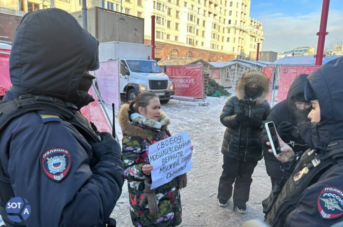 Как рассказал корреспондент SOTAvision, при задержании Мария Андреева кричала «Давайте, задерживайте жену мобилизованного!». Через какое-то время к сотрудникам полиции подбежал еще один полицейский и заявил «Эту не трогать! Вы что, не слышали? Эту не трогать!».