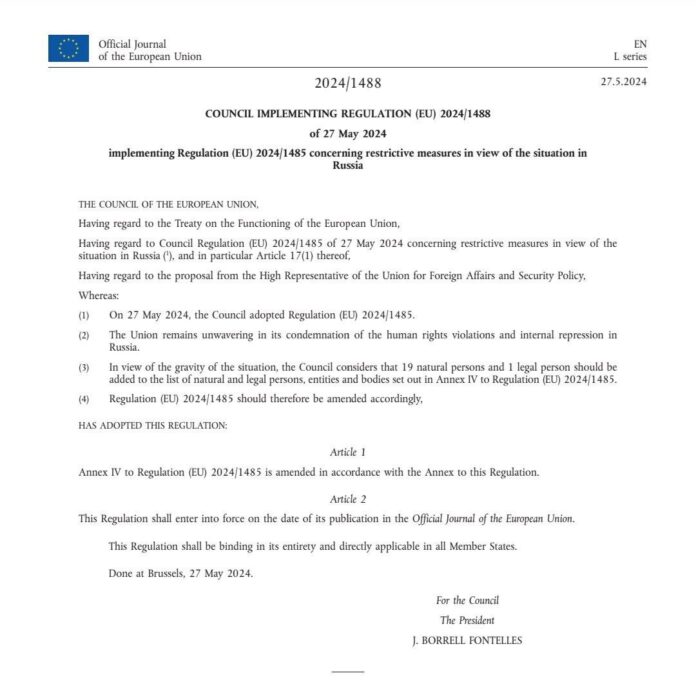 Евросоюз также запретил продавать, поставлять, передавать или экспортировать в Россию оборудование, которое можно использовать для репрессий внутри страны — огнестрельное оружие, боеприпасы, бомбы, гранаты и колючую проволку.