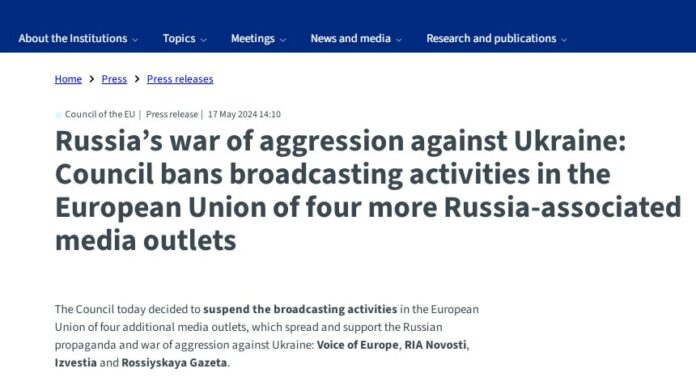 В обоснование своего решения Совет ЕС указал, что все эти медиа контролируются властями России, а их работа направлена на дестабилизацию соседних стран. Зампред Еврокомиссии Вера Юрова подтвердила введенные ограничения и напомнила про запрет на российское финансирование для европейских СМИ, партий и НКО.