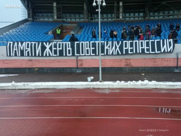 ВажноеФутбольные фанаты почтили память жертв политических репрессий в СССР ВажноеНовости Футбольные фанаты почтили память жертв политических репрессий в СССР Sota Vision 29.10.2023 22 Поделиться TwitterTelegramFacebookPinterestWhatsAppCopy URL Болельщики ярославского «Шинник» вывесили с трибун огромный баннер во время домашнего матча с «Торпедо». Акцию они приурочили к 30 октября — Дню памяти жертв политических репрессий. Поделиться TwitterTelegramFacebookPinterestWhatsAppCopy URL Предыдущая статьяРодственники сбежавшей из Ингушетии Марины Яндиевой не собираются возвращать девушку домой, но помогавшему ей юристу по-прежнему грозит опасностьСледующая статья«Столько сфальсифицировали, что скоро сами на себя выйдут», — хабаровчане о суде над Сергеем Фургалом ЧИТАТЬ ЕЩЕ Важное «Американские выборы лучше предсказывать, гадая на кофейной гуще и с картами Таро»: эксперты о победе демократов на местных выборах в США и перспективах кампании... 08.11.2025 Важное От колонии до Вильнюса: истории освобожденных белорусских узников, вывезенных в Литву 07.11.2025 Новости В Риге 10 тысяч человек вышли на улицу против отказа Латвии от конвенции о борьбе с домашним насилием 06.11.2025 Популярное «Американские выборы лучше предсказывать, гадая на кофейной гуще и с картами Таро»: эксперты о победе демократов на местных выборах в США и перспективах кампании... 08.11.2025 От колонии до Вильнюса: истории освобожденных белорусских узников, вывезенных в Литву 07.11.2025 В Риге 10 тысяч человек вышли на улицу против отказа Латвии от конвенции о борьбе с домашним насилием 06.11.2025 Активистку Зульфию Ситдикову повторно приговорили к 10 суткам ареста за возложение цветов к мемориалу жертвам политических репрессий 06.11.2025 Загрузить больше