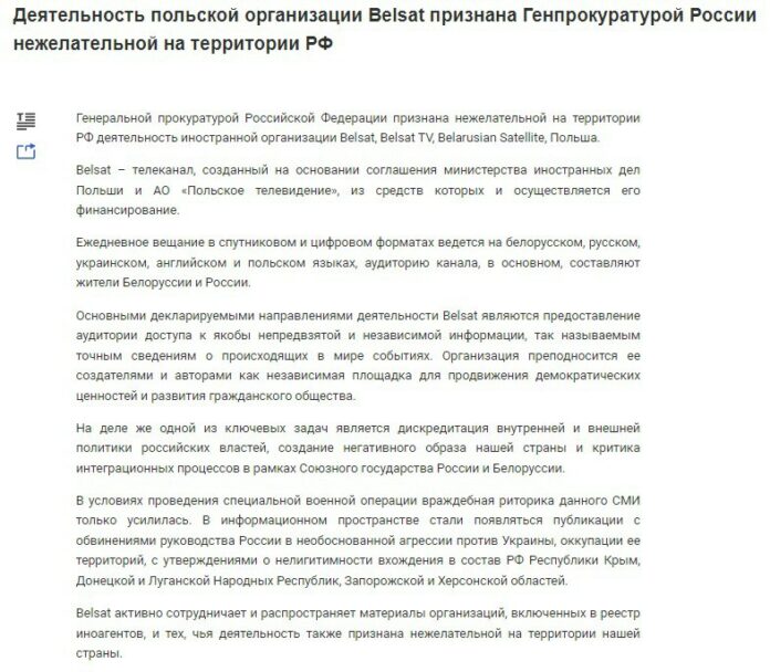 «Белсат» — проект Польского телевидения, ориентированный на Беларусь. В России работает проект канала — издание «Вот Так».