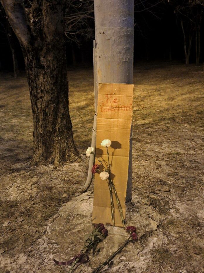 К такому стихийному мемориалу белгородцы несут цветы в знак скорби о смерти политика.