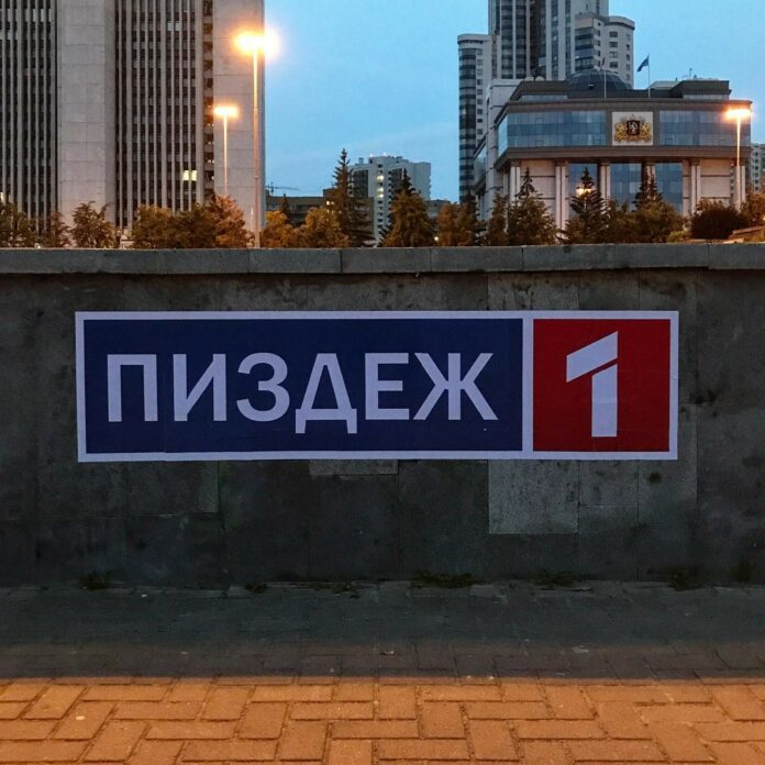 Екатеринбург в очередной раз оправдывает неофициальное звание столицы стрит-арта. И не только потому, что в нём проходят два фестиваля уличного искусства: “STENOGRAFFIA” и “Карт-бланш”. Представитель контркультуры (так он говорит в интервью Meduza) и актуального стрит-арта на политическую тематику с ником xbfmthx в Instagram творит именно в Екатеринбурге. Самой известной его работой стало граффити “Пиздёж-1” на Октябрьской площади. Художник прокомментировал граффити в виде логотипа телеканала “Россия-1” так: “Все что я слышу от них пиздeж один” (авторские орфография и пунктуация сохранены).