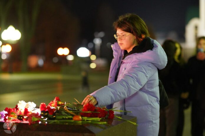 После сообщений о гибели Алексея Навального на площади Победы Калининграда образовался стихийный мемориал.