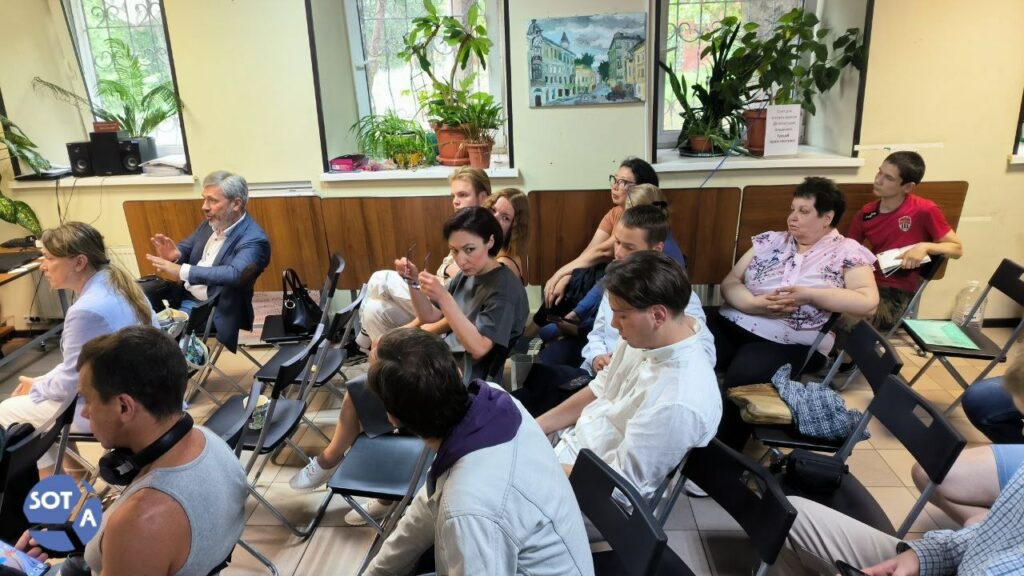 ФотоКандидаты «Депутатской академии» готовятся к предстоящим выборам Фото Кандидаты «Депутатской академии» готовятся к предстоящим выборам Sota Vision 01.07.2023 65 Поделиться TwitterTelegramFacebookPinterestWhatsAppCopy URL SOTA // Михаил Лебедев SOTA // Михаил Лебедев Михаил Лебедев Поделиться TwitterTelegramFacebookPinterestWhatsAppCopy URL Предыдущая статьяПравого активиста Савву Федосеева, задержанного утром в Петербурге, отпустили из отдела полиции без протоколаСледующая статья«Спектакль не может быть преступлением! Следствие не сказало ни одного слова!» Дело Беркович ЧИТАТЬ ЕЩЕ Важное «Как человек проживает свою единственную жизнь в закрытой системе» — в Москве открылась выставка, посвященная жизни в ПНИ 09.12.2025 Важное Суд огласил приговоры остальным фигурантам по «экономическому» делу Фургала 03.12.2025 Важное Бывший полицейский дядя редактора Ura ru Дениса Аллаярова дал показания на племянника по делу о покупке оперативных сводок 21.11.2025 Популярное Украина готова провести выборы в течение 60-90 дней при поддержке США и ЕС — Зеленский 09.12.2025 На активистку Сашу Казанцеву составили два протокола о «пропаганде ЛГБТ» 09.12.2025 Кремлеботы атаковали Мизулину после критики блокировки Roblox 09.12.2025 «Как человек проживает свою единственную жизнь в закрытой системе» — в Москве открылась выставка, посвященная жизни в ПНИ 09.12.2025 Загрузить больше