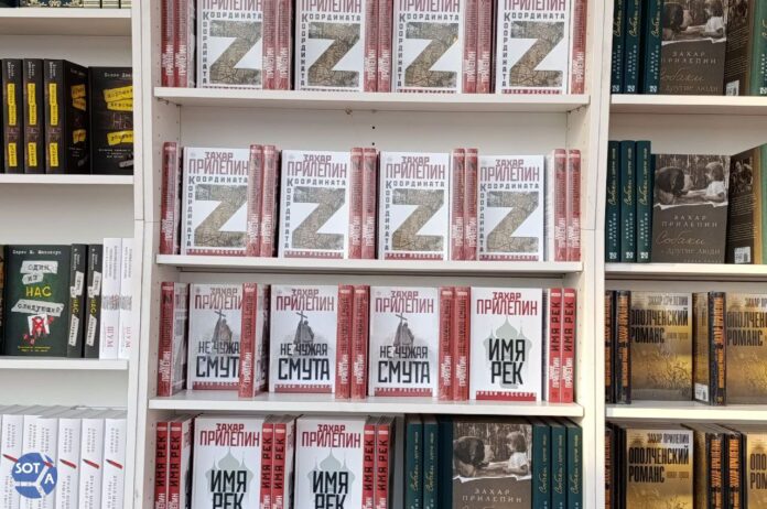 Рядом с книгами Захара Прилепина соседствует Дарья Донцова, сборники z-поэзии лежат неподалеку от избранных статей и речей Рамзана Кадырова, белорусская дипломатия находится рядом с антивоенными книгами Алеся Адамовича.