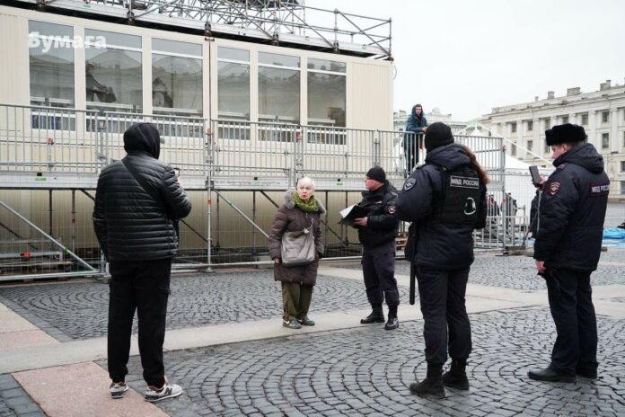 В Петербурге на Дворцовой площади задержали 84-летнюю Людмилу Васильеву, блокадницу и активную участницу протестов, об этом сообщает корреспондент «Бумаги».
