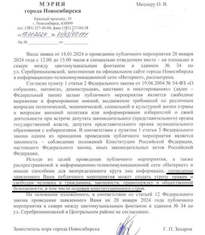 Мэрия Новосибирска запретила акцию о проблемах с отоплением в городе как угрожающую правам человека и конституционному строю
