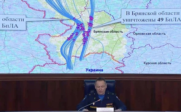 Украинские БПЛА, пытавшиеся атаковать резиденцию Путина на Валдае взлетели из Сумской и Черниговской областей, сообщили в Минобороны РФ. Там также показали карту, согласно которой, дроны сбили над Брянской, Смоленской и Новгородской областями.