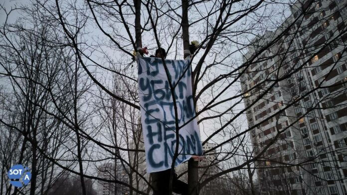 НовостиМолодой человек залез на дерево и развернул полотно с надписью «Путин убил... НовостиФото Молодой человек залез на дерево и развернул полотно с надписью «Путин убил его, но не сломал» Sota Vision 01.03.2024 32 Поделиться TwitterTelegramFacebookPinterestWhatsAppCopy URL SOTAvision Поделиться TwitterTelegramFacebookPinterestWhatsAppCopy URL Предыдущая статьяВ день похорон Навального с ростовского ларька с белорусским мороженым убрали газету «Собеседник» с политиком на обложкеСледующая статьяЛюди, которые не успели дойти до Борисовского кладбища, оставляют свечи, цветы и плакаты Навального у стихийных мемориалов ЧИТАТЬ ЕЩЕ Новости Подозреваемых в попытке похищения футболиста Александра Мостового арестовали на 2 месяца 27.10.2025 Новости В Грозном может появиться Путинский суд 27.10.2025 Новости Журналистку Татьяну Монтян объявили «экстремистом» 27.10.2025 Популярное Гитариста «стоптайм» Александра Орлова повторно задержали на выходе из спецприемника 27.10.2025 Блогера-пацифиста Вегана Христолюба перевели в колонию и сразу дважды подряд поместили в ШИЗО 27.10.2025 Подозреваемых в попытке похищения футболиста Александра Мостового арестовали на 2 месяца 27.10.2025 В Грозном может появиться Путинский суд 27.10.2025 Загрузить больше