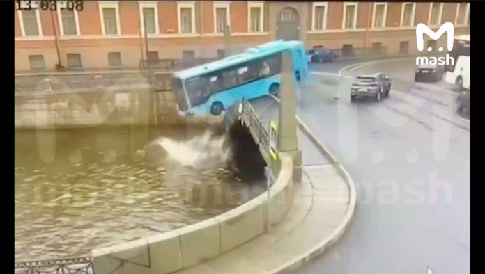 НовостиМомент падения автобуса в Мойку в Петербурге