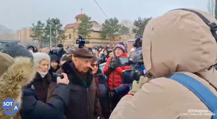В центре делегации мама и отец убитого политика. Когда родители подошли к могиле сына, толпа вокруг стала хлопать и скандировать «спасибо!».