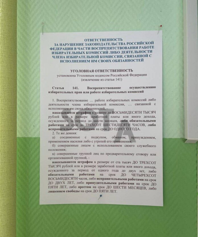 На избирательных участках в срочном порядке начали вешать дополнительные информационные постеры об ответственности за воспрепятствование работе избирательных комиссий