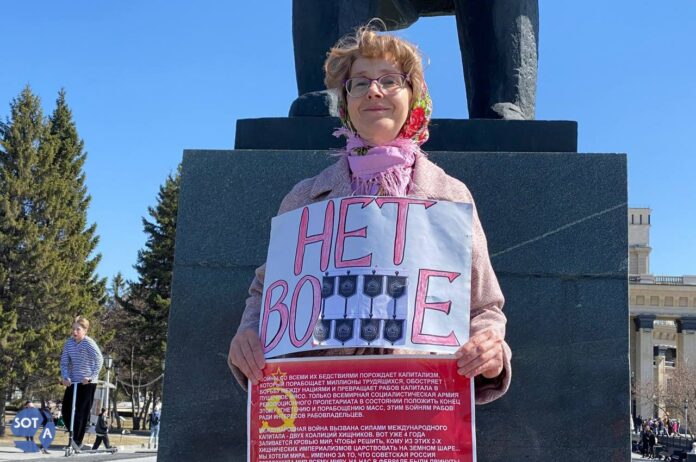 «Людей преследуют за мнение, заводят уголовные дела, люди боятся говорить. Я предлагаю делать это безопасным способом: берите с собой в пикеты цитаты великих людей. Это вам поможет, и никто вас за это не задержит», — рассказала активистка Елена Юн, которая взяла в одиночный пикет 12 антивоенных плакатов.