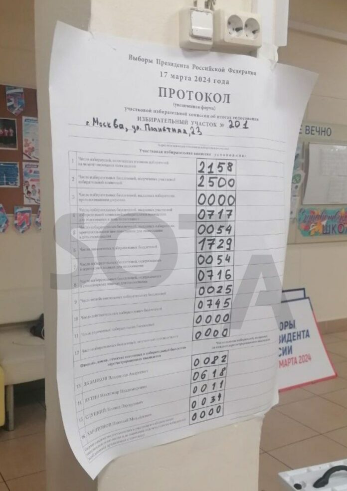 Таким образом у Путина было 57%, а стали «нужные» 86%. Даванкову вместо 20% нарисовали 11%.  Наблюдатели пытались настоять на пересчете по установленной процедуре, но комиссия отказалась это делать.