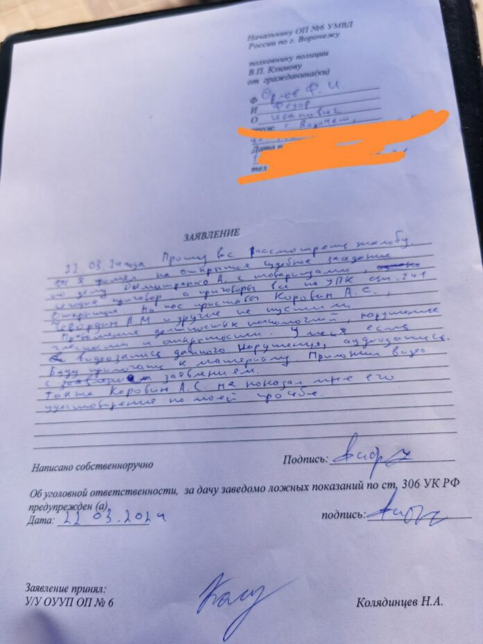 Они не пустили на оглашение приговора воронежцу Александру Димитренко ни журналистов, ни даже его родителей.