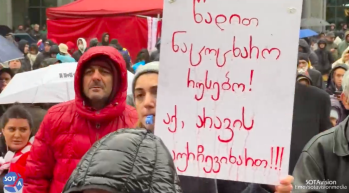 Протестующие продолжают транслировать в динамики сирену и речь «Рабы России, просим освободить Грузию».