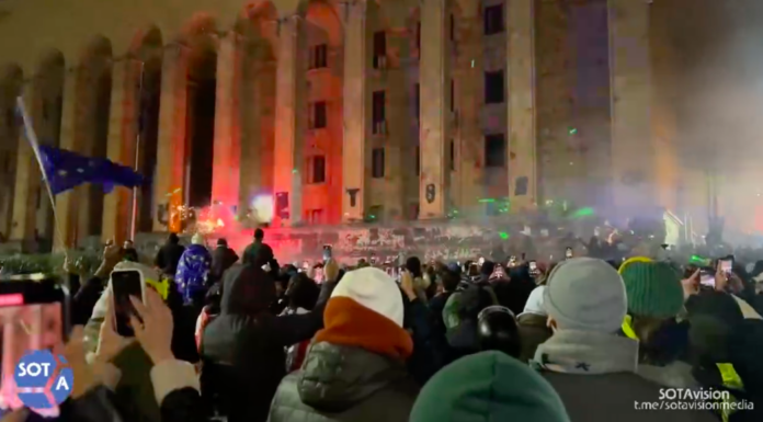 Сейчас в Тбилиси не больше 3-4 градусов, но многие люди попали под струи водометов и сильно вымокли. Толпа, однако, не расходится, протестующие разводят на улицах костры и греются около них.