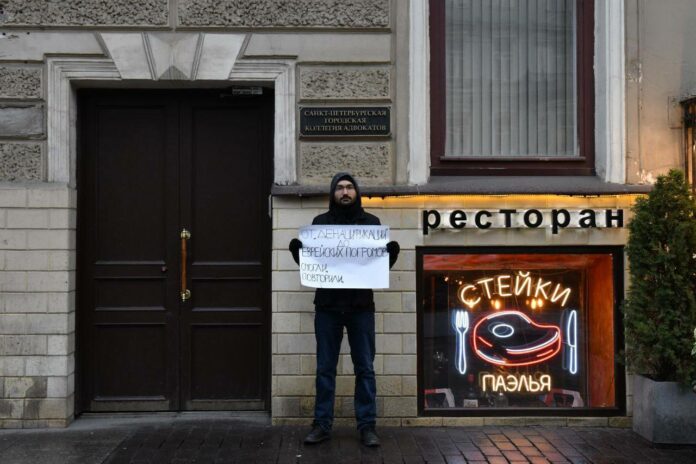Житель Петербурга больше часа простоял на Невском проспекте. Праздничный день был выбран им, чтобы продемонстрировать, что не только ненависть способна объединять людей. Об этом сообщает издание «Бумага».