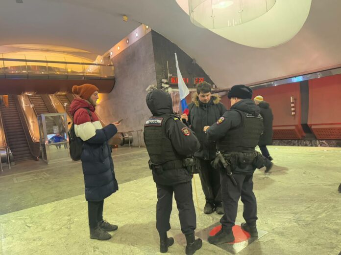 По сообщениям подписчиков SOTAvision, молодого человека, который принес на Борисовское кладбище триколор, сейчас остановили и допрашивают на станции метро «Борисово»