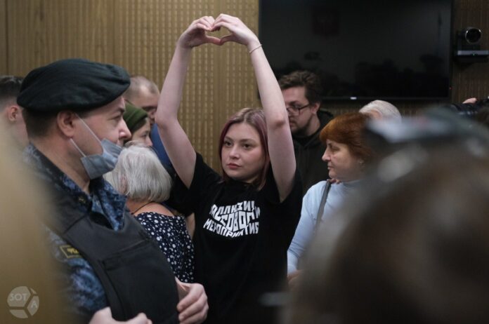 Александру Попову задерживали на Триумфальной площади в Москве в сентябре 2022-го вместе с будущим мужем. Она рассказывала, что в отделении полиции ей приклеивали стикеры к лицу на суперклей и пытались заклеить рот. Полицейские угрожали изнасиловать ее впятером, вырывали волосы, били и трогали за половые органы. Позже ее отпустили в статусе свидетеля.