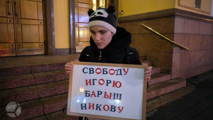 Корреспондента SOTAvision Михаила Лебедева и активистку Оксану Осадчую задержали вечером 27 декабря у здания Генпрокуратуры: девушка вышла в пикет в поддержку политзаключенного Игоря Барышникова, а журналист акцию снимал.