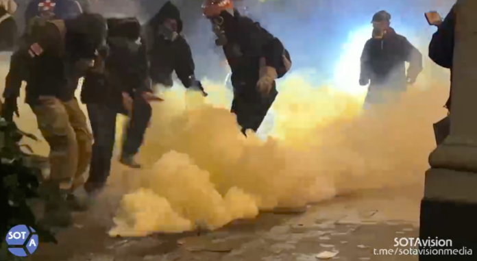 Полиция продолжает забрасывать митингующих дымовыми шашками. Обстановка в центре Тбилиси прямо сейчас