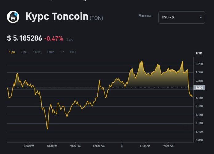 Сейчас цена токена вернулась к нормальному значению в ~5,20 доллара, хоть и упала на половину процента.