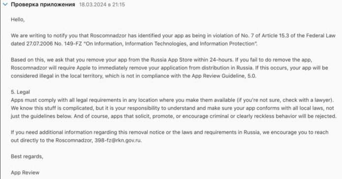 В уведомлении представители Apple отметили, что разработчики обязаны соблюдать законы стран, в которых распространяют свои приложения.