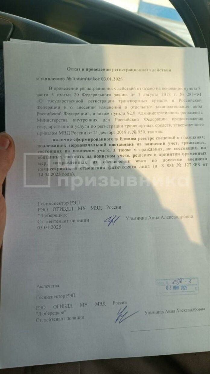 Жителю Подмосковья отказали в регистрации автомобиля, сославшись на ограничения, наложенные военкоматом и находящиеся в реестре воинского учета. Об этом сообщает «Школа призывника».