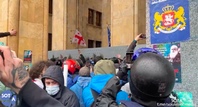 Парламент принял закон об «иноагентах» в третьем, окончательном чтении: 84 депутата парламента проголосовали «за» принятие закона. При этом обсуждение закона спровоцировало драку в парламенте. По оценкам СМИ, в протесте принимают участие до 3 тысяч человек. Наш корреспондент в Тбилиси Мария Нуйкина передает, что протестующие пытаются сломать забор парламента, а силовики в здании уже готовят баллоны с газом.