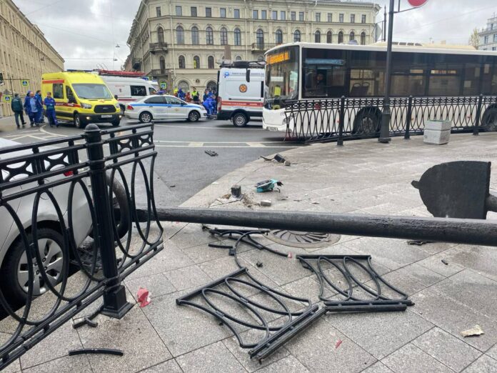Рейсовый автобус столкнулся с каршерингом, пробил ограду и вылетел с моста в Мойку. Людей из затонувшего по крышу автобуса начали вытаскивать очевидцы, следом подоспели спасатели.