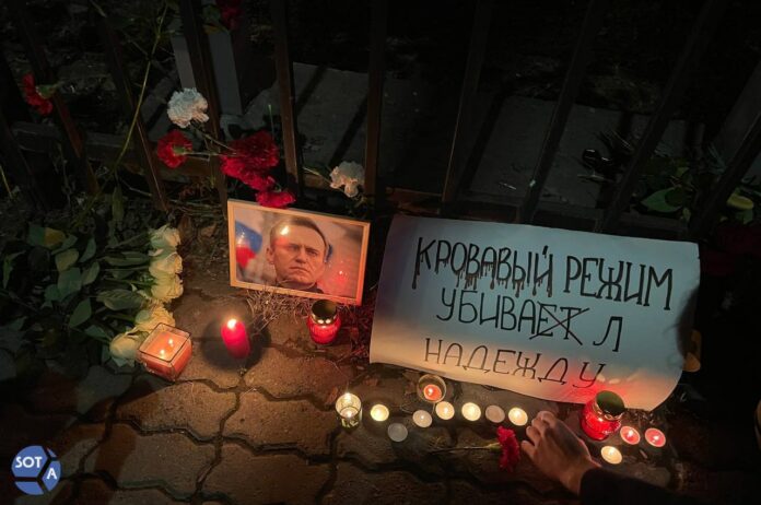 Российские эмигранты в Ереване пришли к посольству РФ в ответ на новость об Алексее Навальном