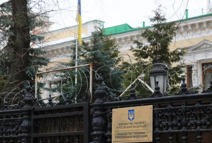 Посольство Украины располагалось в Москве по адресу Леонтьевский переулок, дом 18.